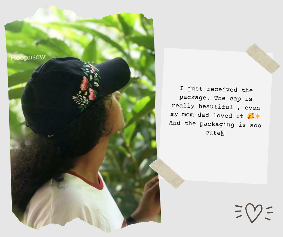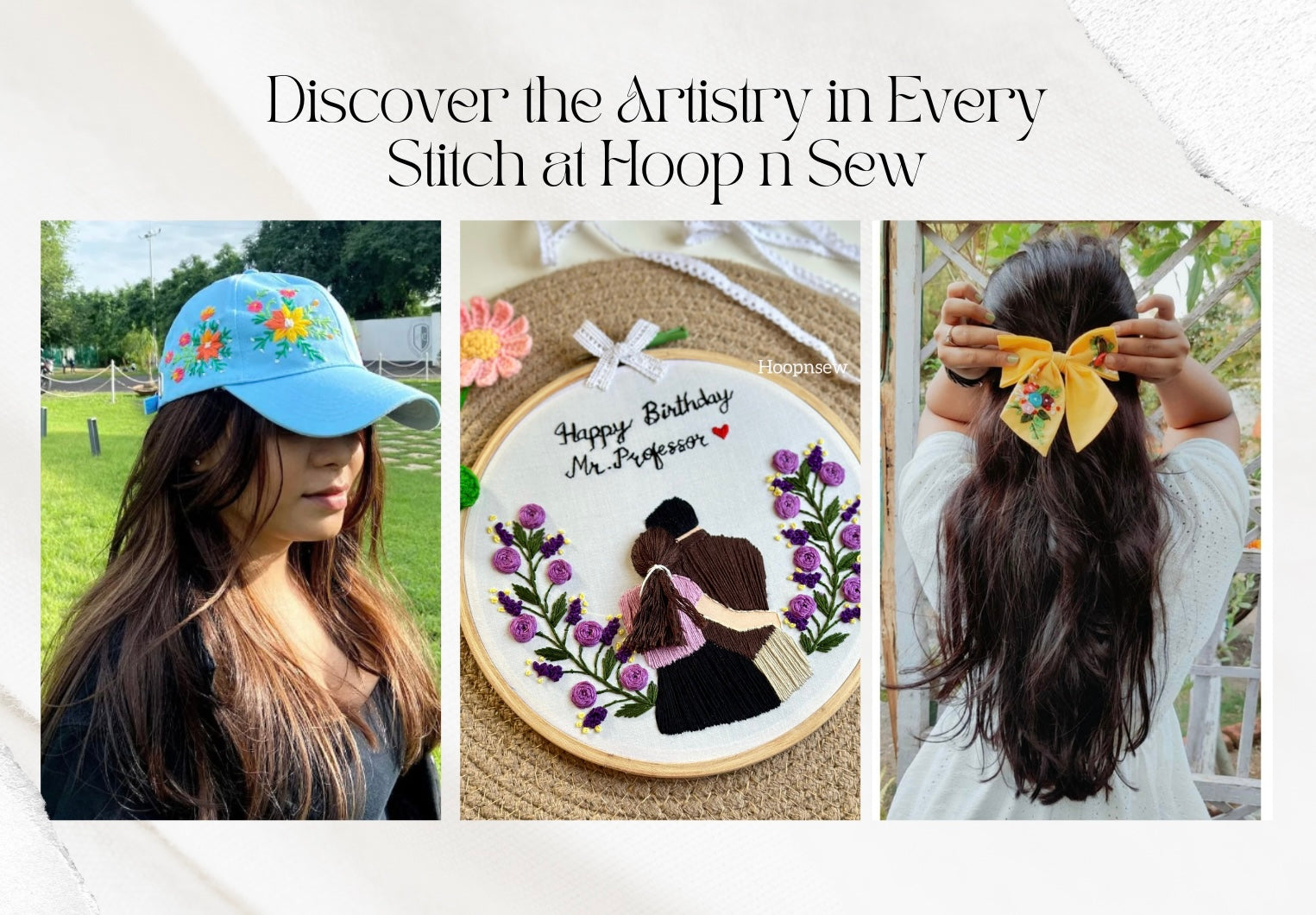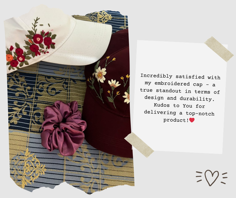 Absolutely, we welcome custom orders for both embroidery hoops and caps. If you have a specific design in mind, please reach out to us through direct message on Instagram @hoopnsew or email us at hoopnsew@gmail.com. We're excited to bring your unique vision to life!