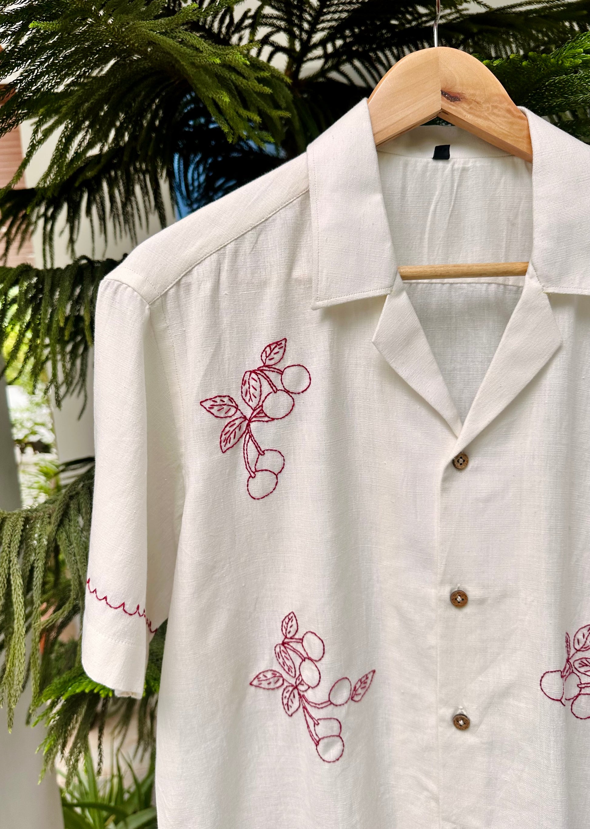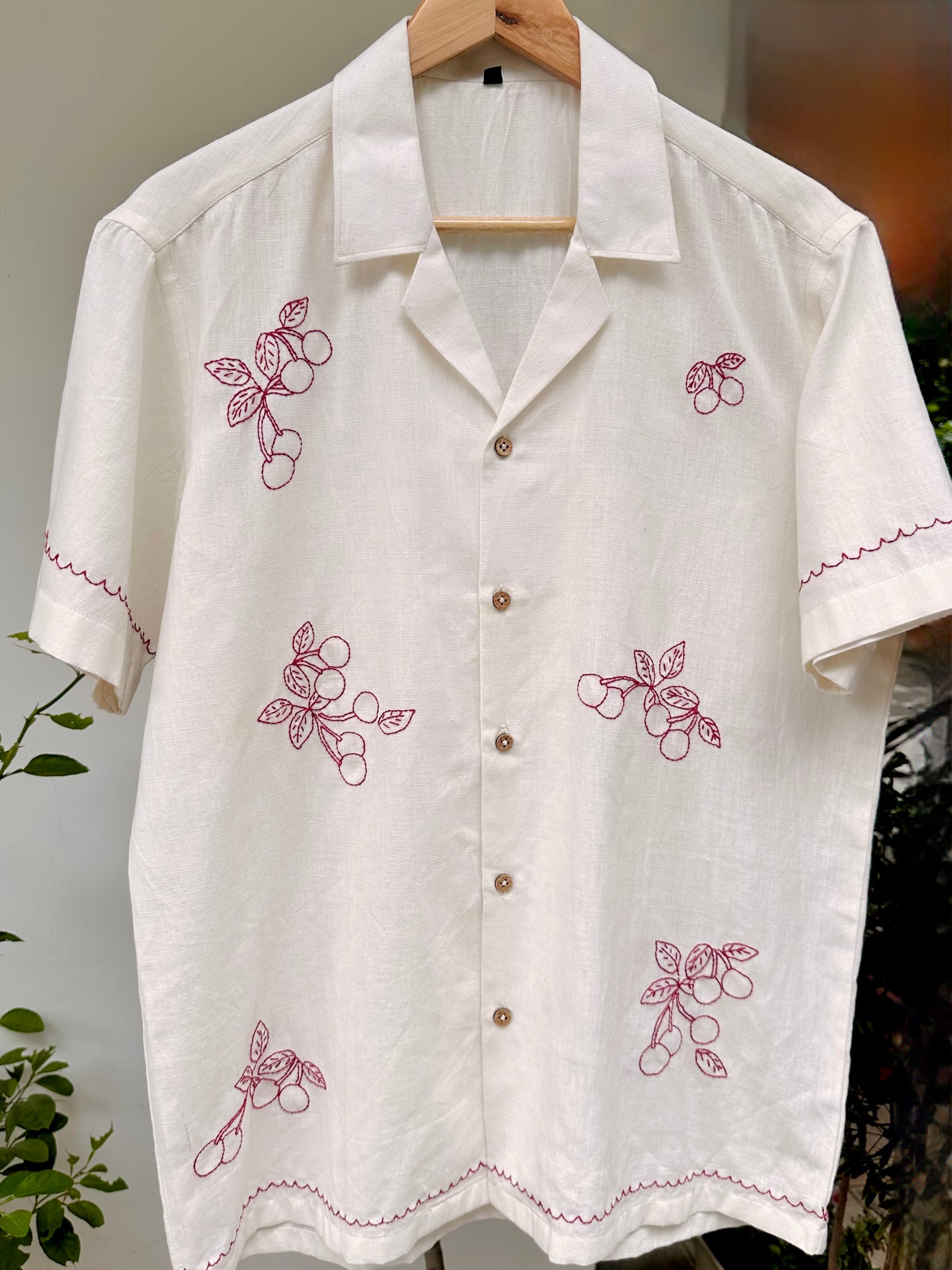 Embrace sustainable style with our cherry-embroidered shirt, made from 100% organic cotton.