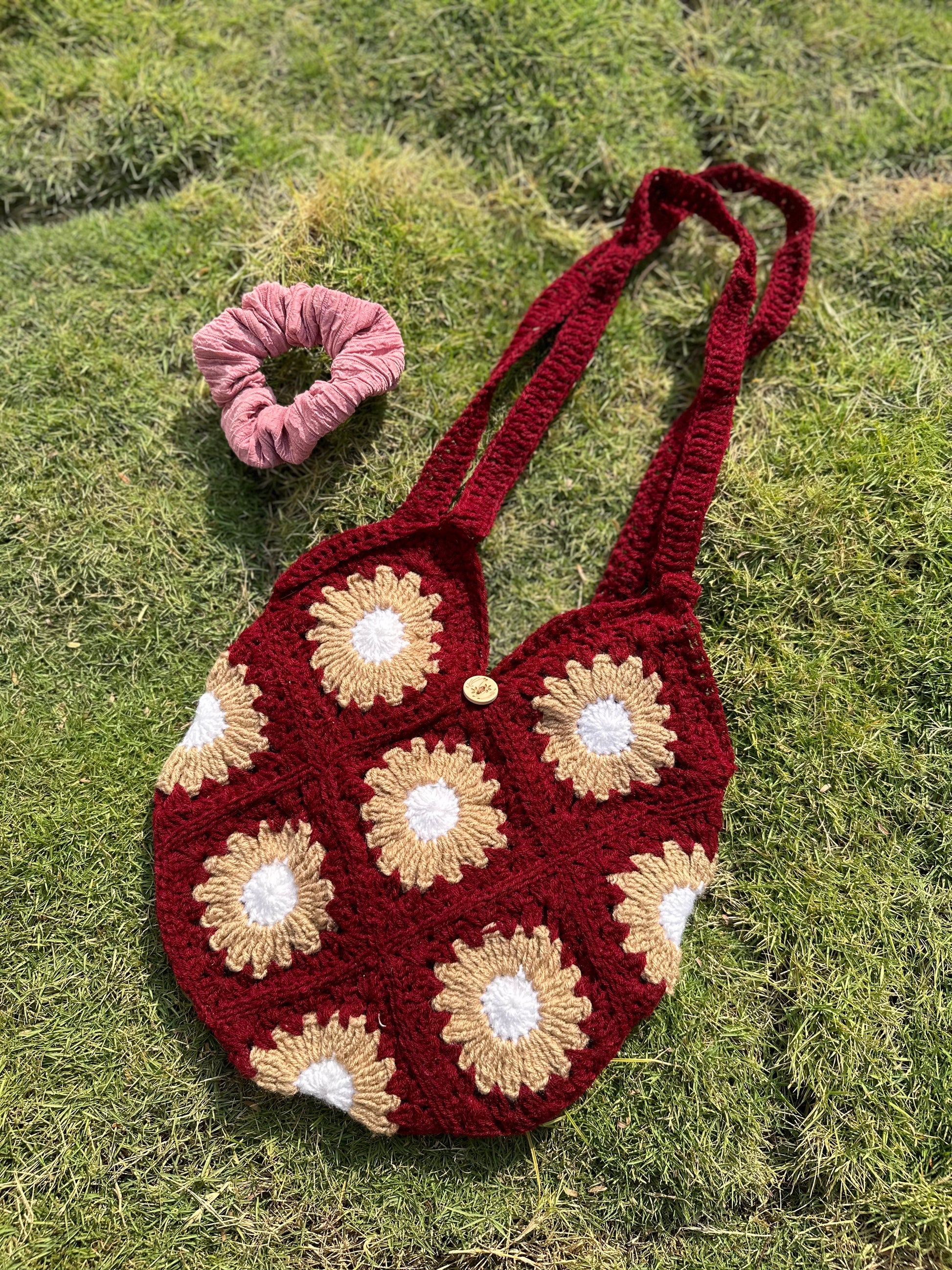 Our bestselling floral crochet tote bag is the perfect addition to your daily outfit. Perfect for holding on to your wallet, keys, phone, charger and lip balm and for adding a little bit of summer and sunshine everywhere you go!
