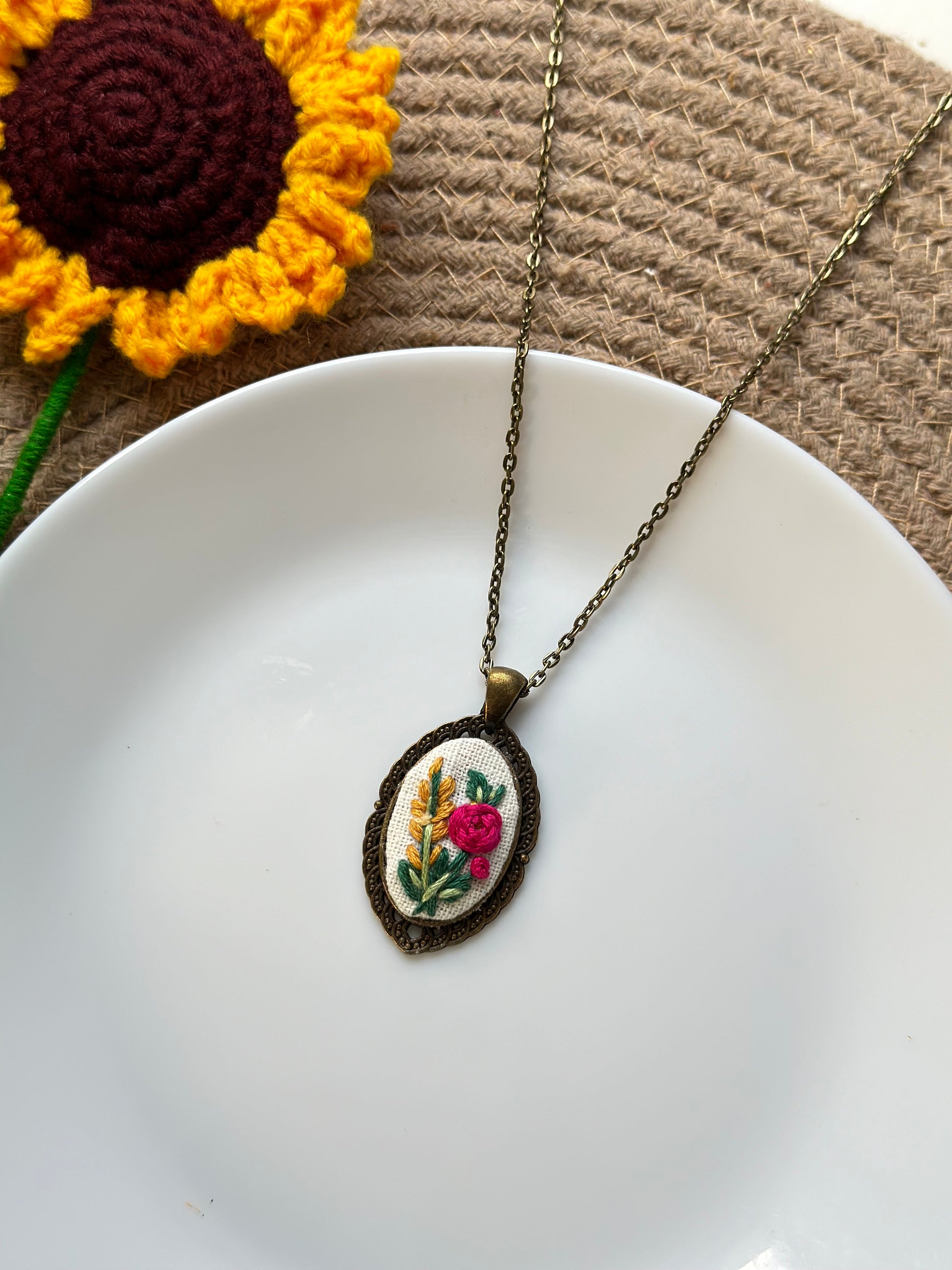 Adorn your neckline with our unique hand-embroidered rose pendant which will pair perfectly with just about anything in your wardrobe. A beautiful and thoughtful gift for your loved ones or even yourself!