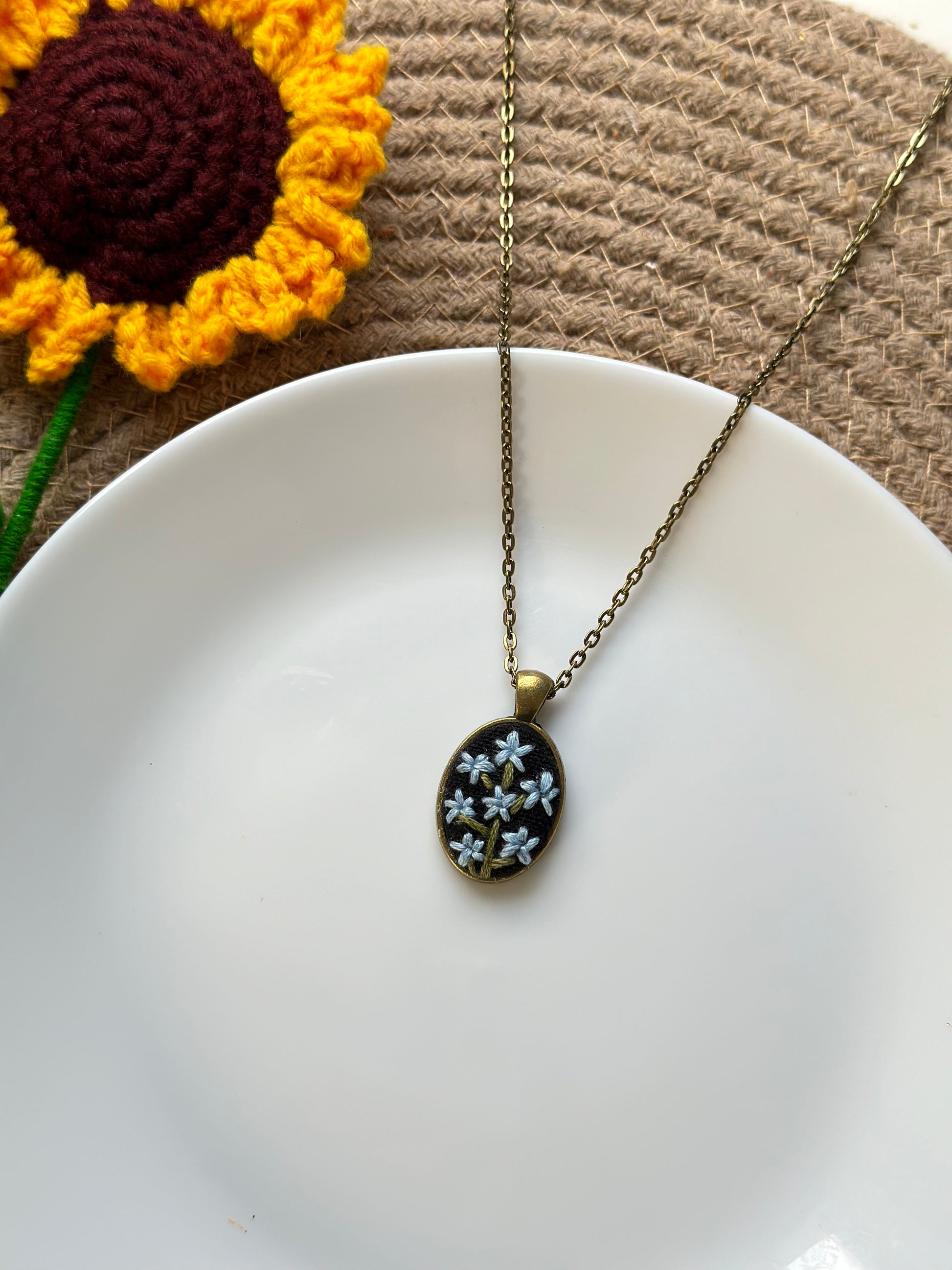 Adorn your neckline with our unique hand-embroidered blue flowers pendant which will pair perfectly with just about anything in your wardrobe. A beautiful and thoughtful gift for your loved ones or even yourself!