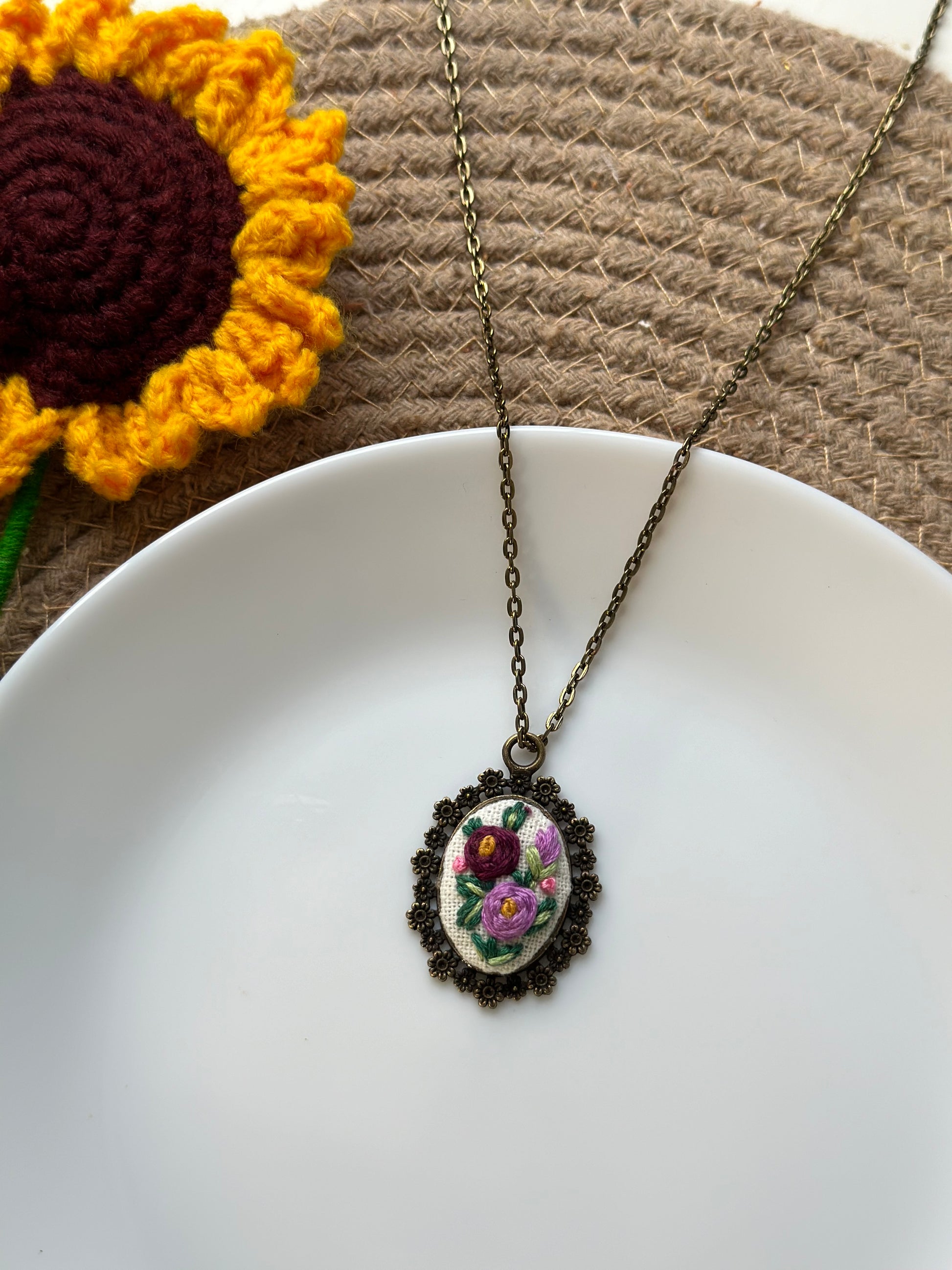 Adorn your neckline with our unique hand-embroidered rose pendant which will pair perfectly with just about anything in your wardrobe. A beautiful and thoughtful gift for your loved ones or even yourself!