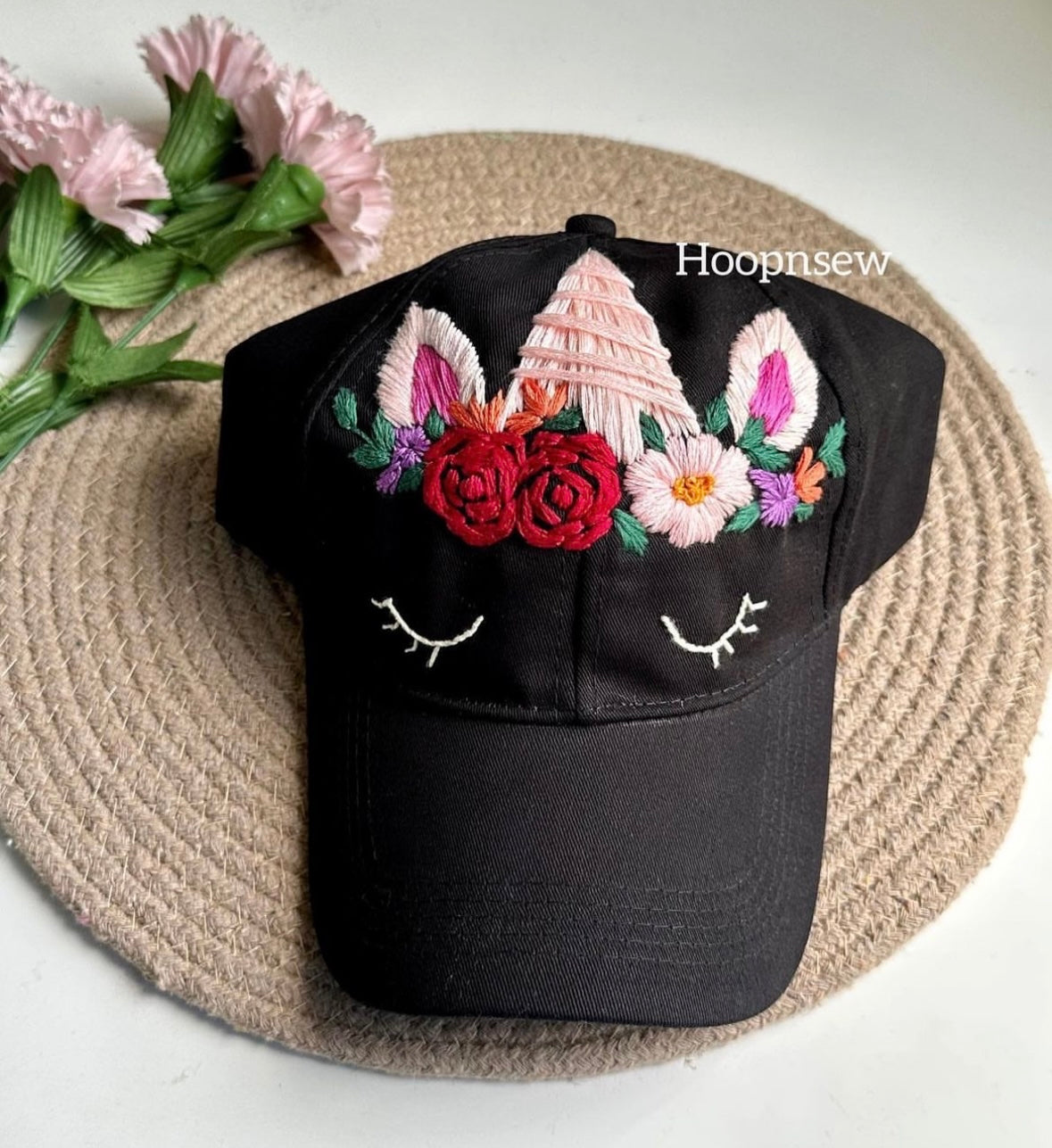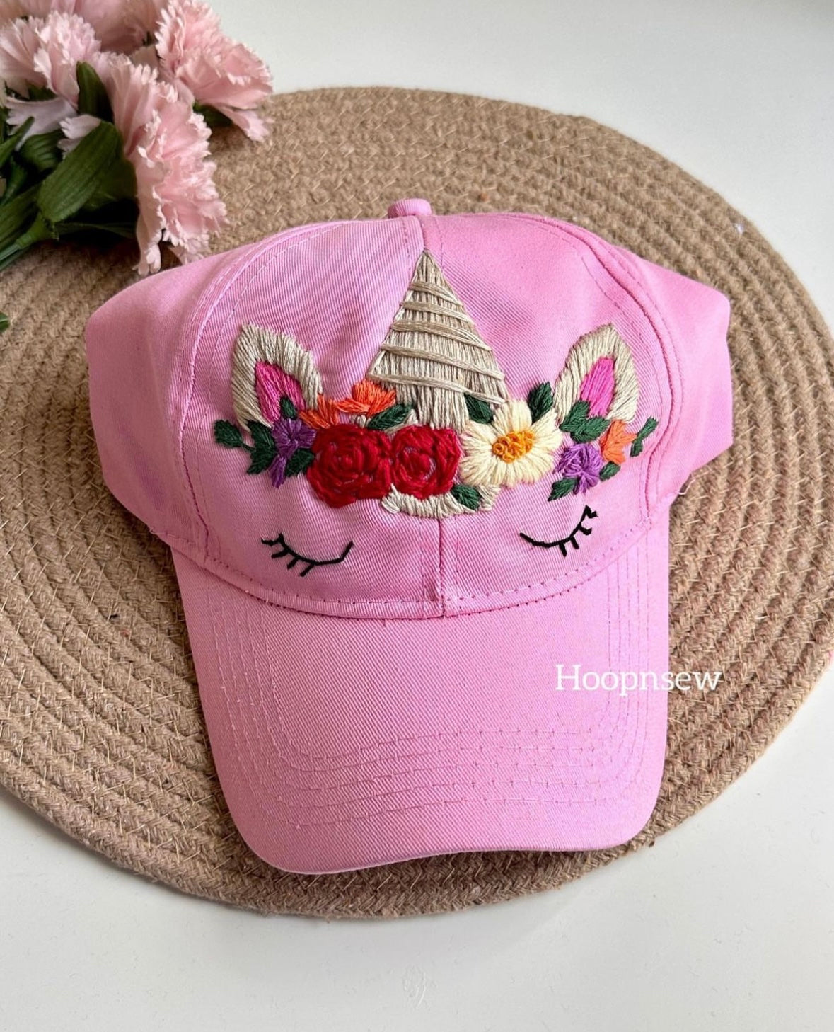 Stay protected from the sun while looking cute in our bespoke unicorn embroidered cap! Take a look at all the different colours available by clicking on the drop-down menu.