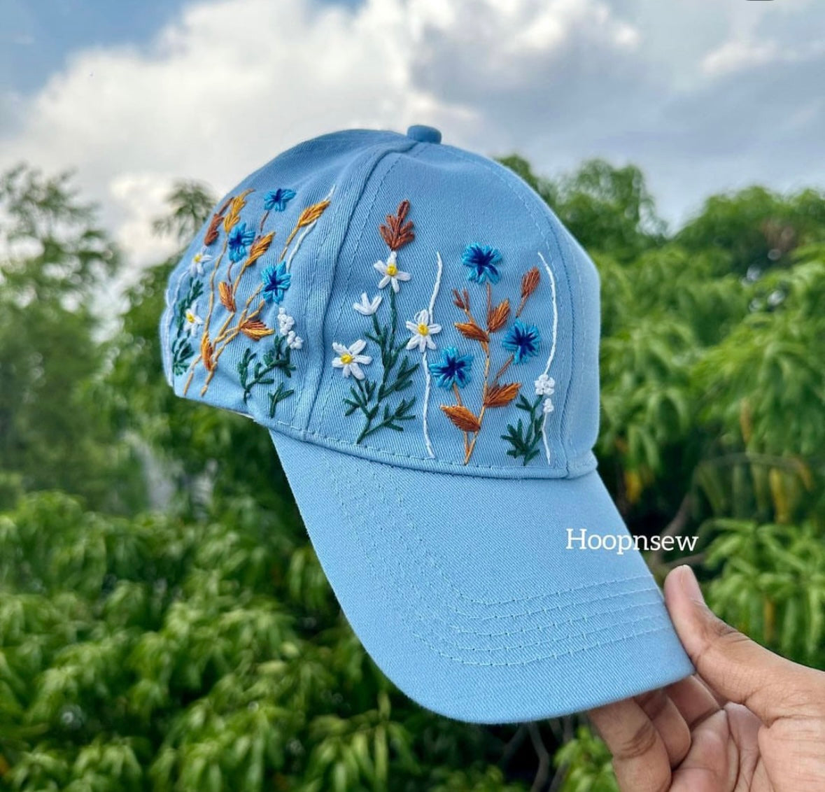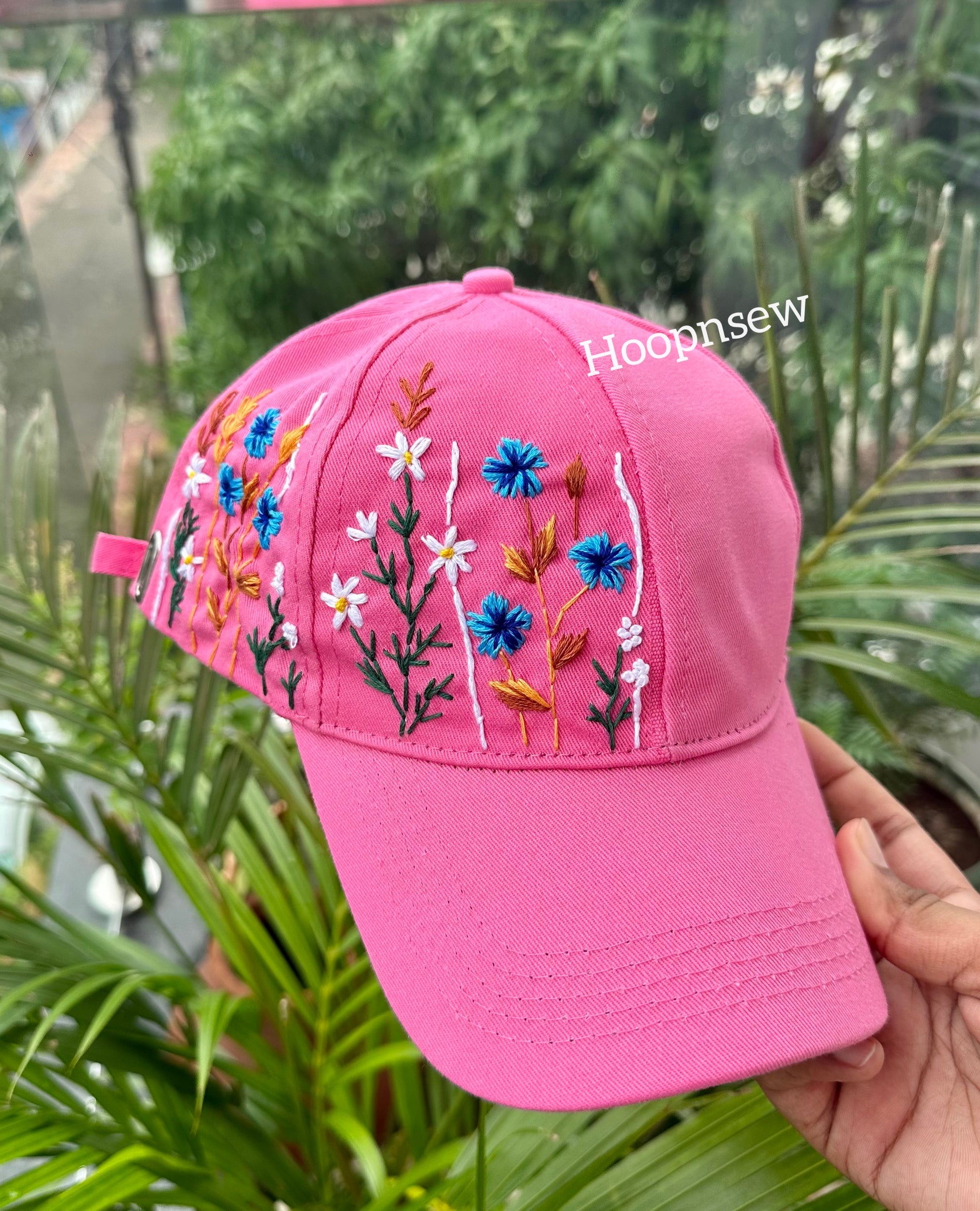 Stay protected from the sun while looking cute in our bespoke floral embroidered cap! Take a look at all the different colours available by clicking on the drop-down menu.
