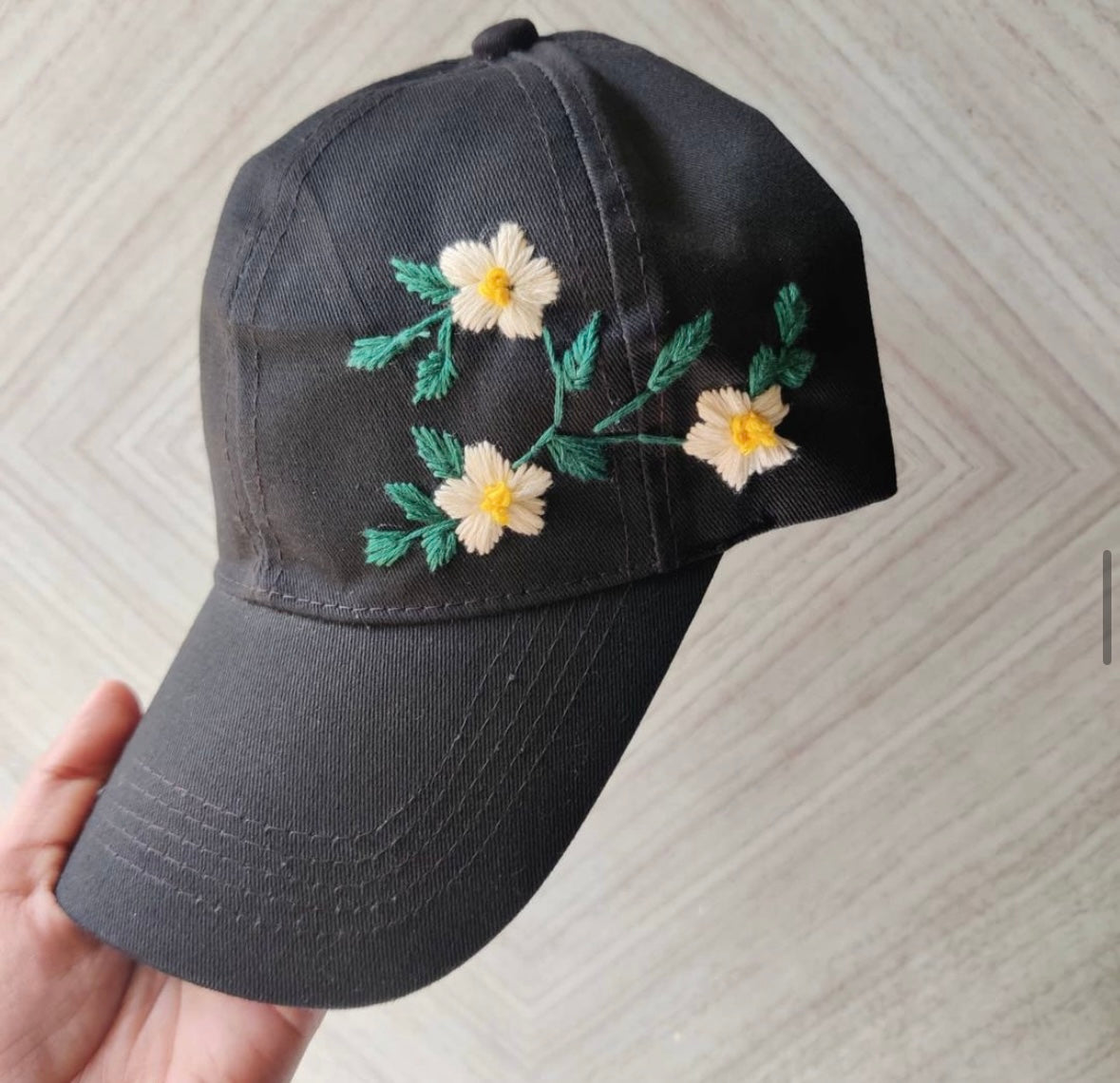 Stay protected from the sun while looking cute in our bespoke floral embroidered cap! Take a look at all the different colours available by clicking on the drop-down menu.