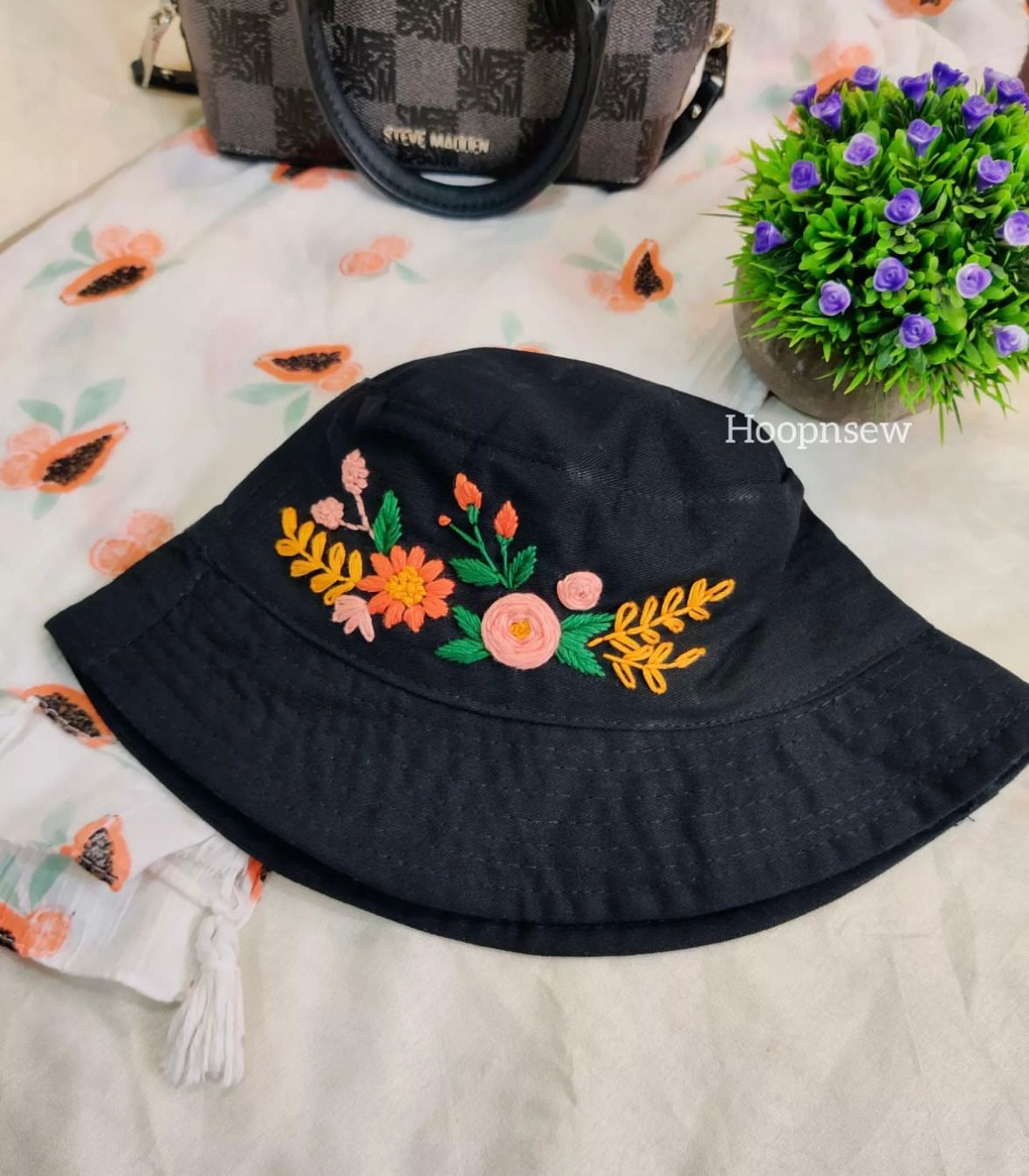 Floral embroidery hat