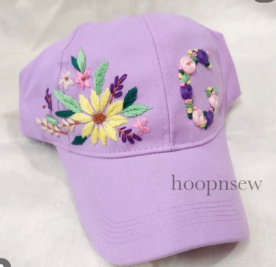 Florals+ Name initial embroidered cap