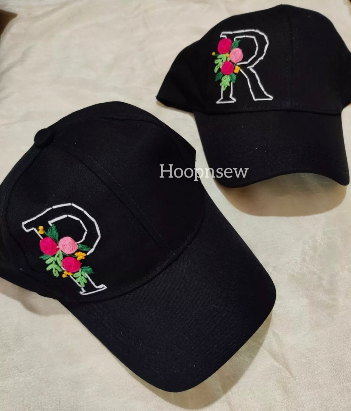 Stay protected from the sun while looking cute in our bespoke initial embroidered cap! Perfect for a customised and thoughtful gift. Take a look at all the different colours available by clicking on the drop-down menu.