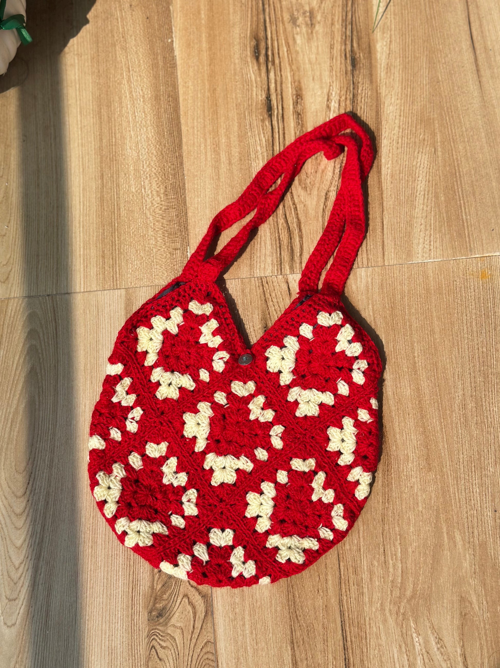 Red crochet tote bag