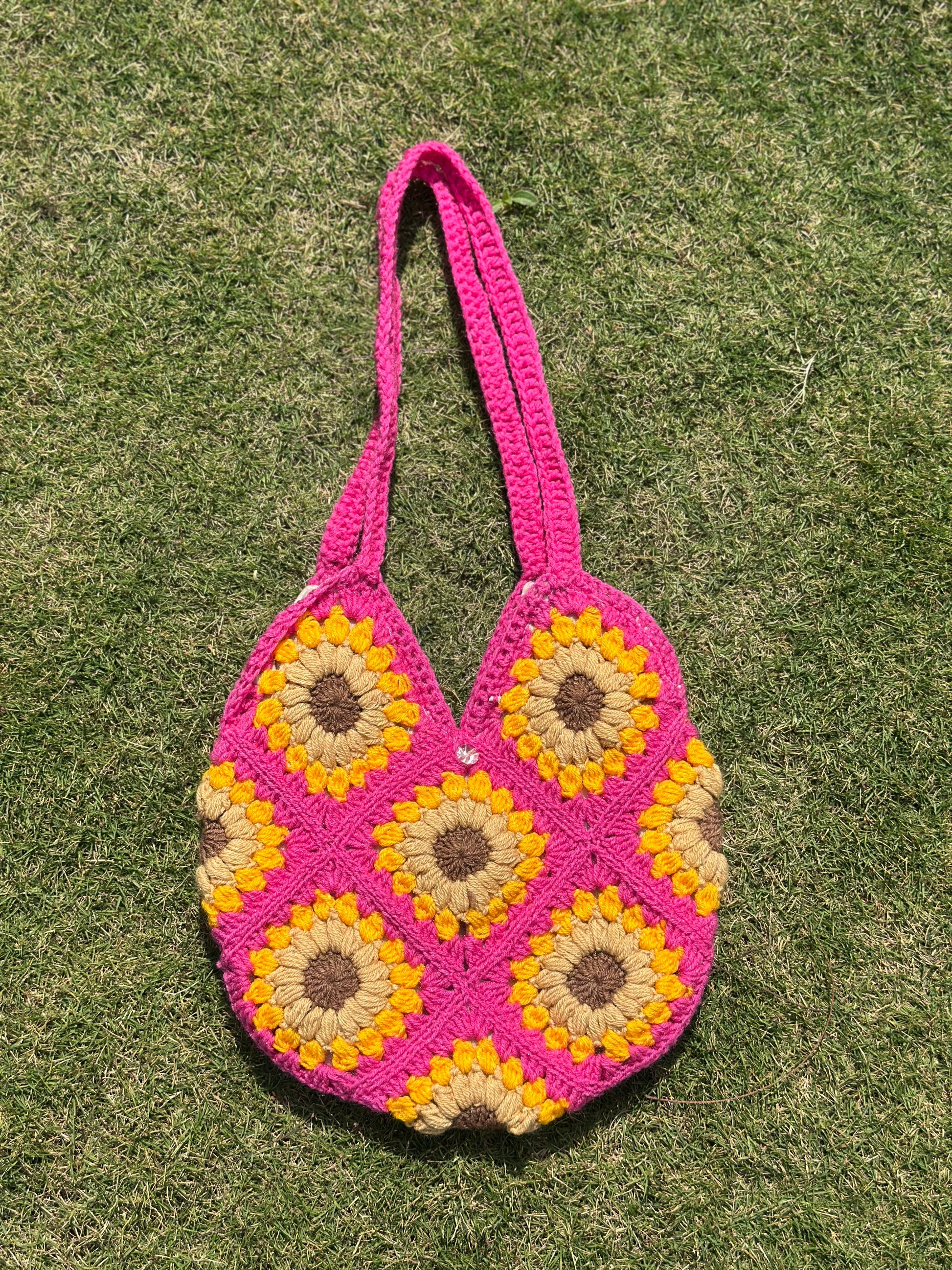Our bestselling daisies crochet tote bag is the perfect addition to your daily outfit. Perfect for holding on to your wallet, keys, phone, charger and lip balm and for adding a little bit of summer and sunshine everywhere you go!