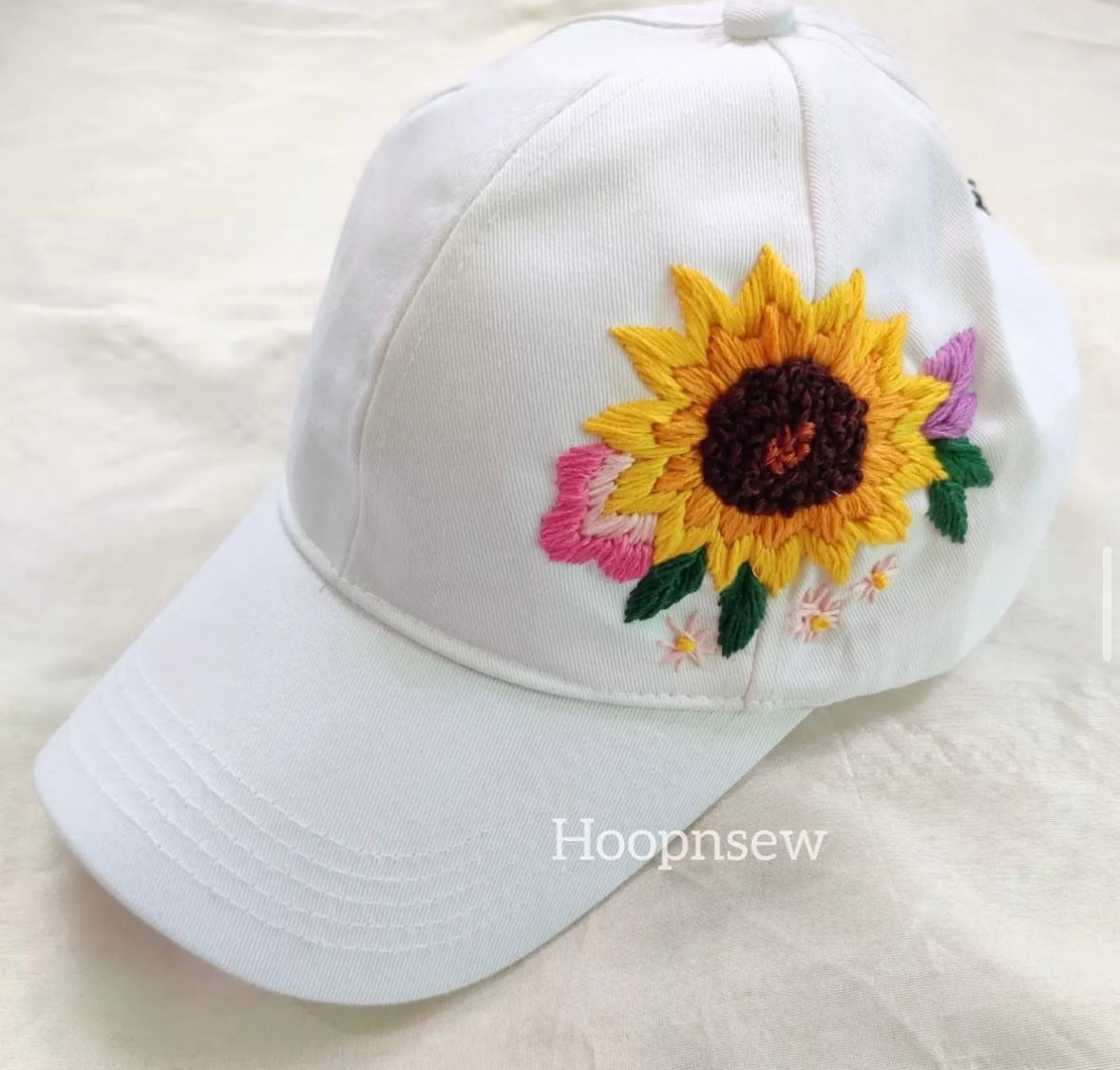 Stay protected from the sun while looking cute in our bespoke sunflower embroidered cap! Take a look at all the different colours available by clicking on the drop-down menu.