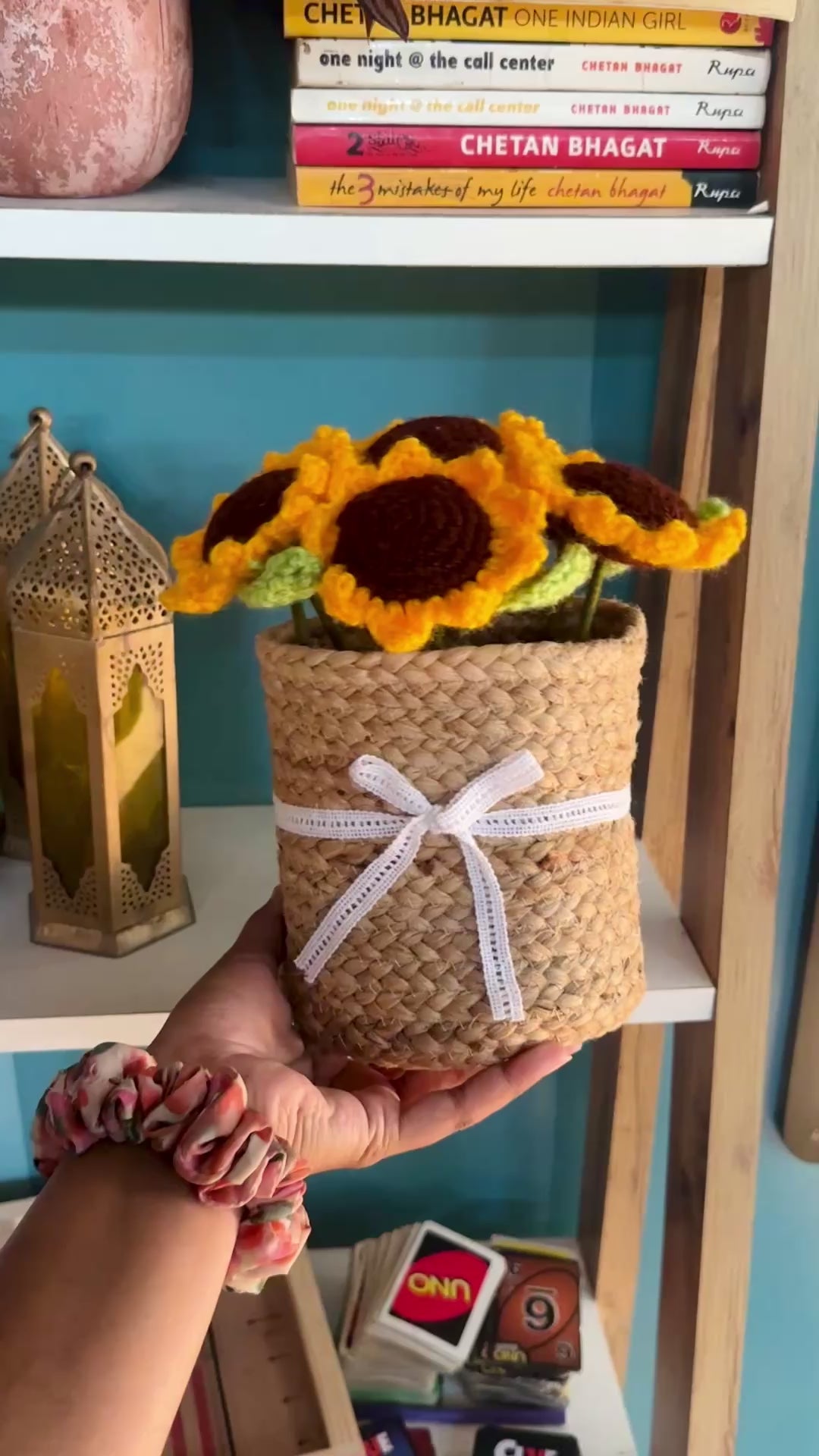A little sunshine for your desk! Has 7-8 sunflowers in a basket, perfect for gifting or adding a touch of handmade warmth to your home.