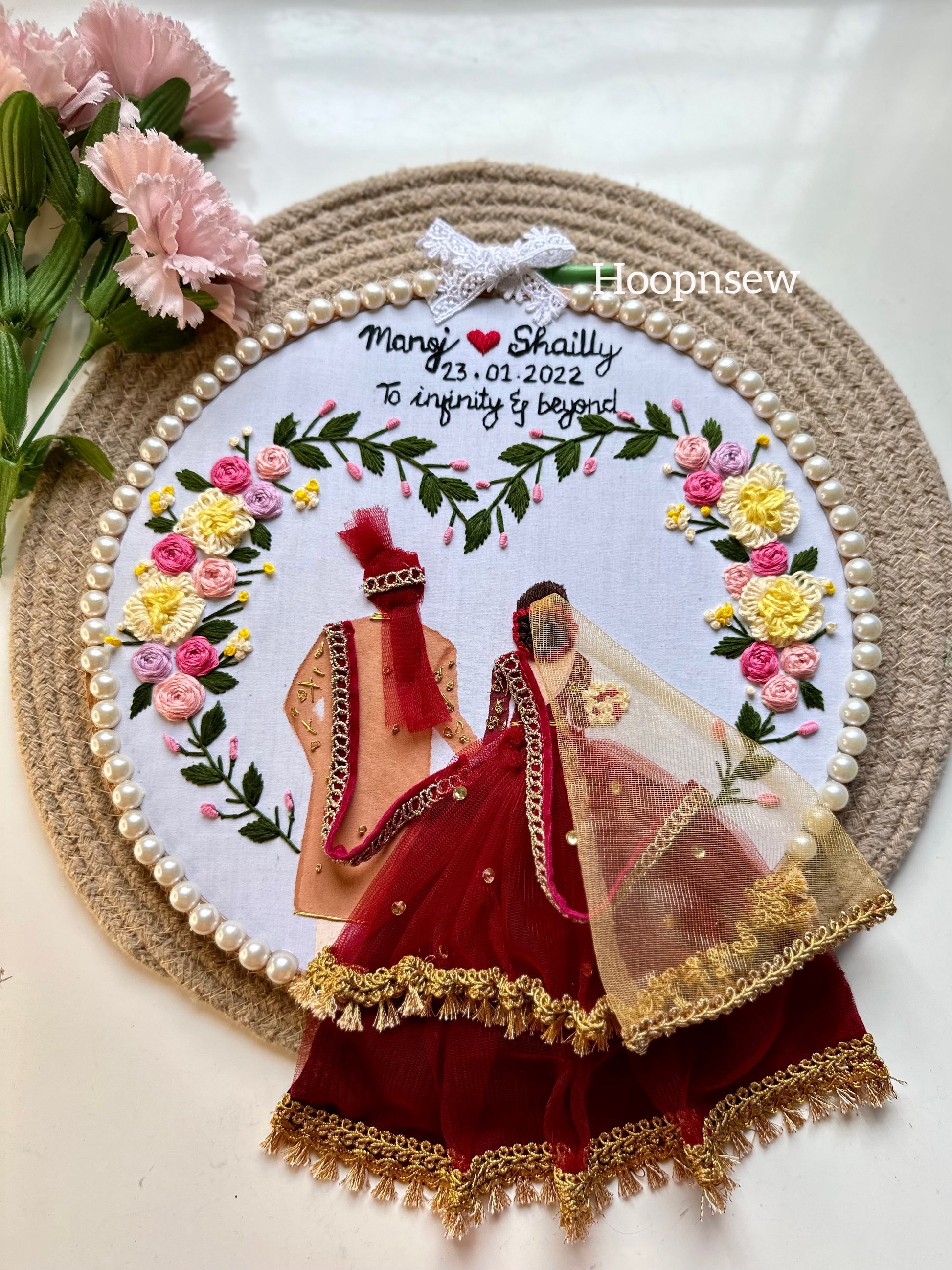 The timeless charm of our hand-embroidered anniversary hoop makes it a perfect anniversary gift, creating a cherished keepsake for your loved ones to celebrate their enduring love. Fill in the form above and pick a hoop style of your liking.